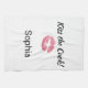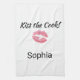 Serviette adorable décorée d'un baiser rose et la consigne : Baise le Cook! Personnalisez avec votre nom de destinataire. Ajoutez un peu de plaisir et de fantaisie à votre cuisine !