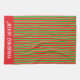 De larges bandes rouges et vertes, avec des lignes blanches étroites qui les séparent, créent une belle serviette de cuisine. Parfait pour votre maison de vacances, et pas si évidemment orienté Noël afin qu'il puisse être utilisé toute l'année. Personnalisez-vous avec un salut de vacances ou un nom dans une large bande rouge au fond.