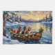 Bring lovable, droopy-eared charm to your holiday season with this adorable Basset Hound Christmas design! This magical scene features three charming, mellow Basset Hounds sitting contentedly in a cozy wooden boat, gently floating on a serene snowy lake at sunset. The boat is beautifully adorned with glowing Christmas string lights and fragrant pine garlands, while the dogs wear festive scarves. They are surrounded by colorful wrapped presents and cheerful holly branches. Soft snowflakes gently fall, and the shimmering reflection of the lights on the water creates a truly magical winter holiday atmosphere. This design is a perfect Christmas gift for any Basset Hound owner, dog lover, or admirer of festive and beloved scent hound art, capturing the serene joy of the season.