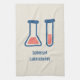 Une serviette de cuisine avec un dessin mignon d'un tube d'essai et d'un bécher. Parfait pour les amateurs de sciences.