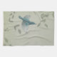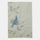 Belle peinture d'un oiseau de la fauvette bleue volant vers le haut placé sur un arrière - plan doux vert cendré mottled avec d'élégantes vignes feuillues. Le dessin est donné une texture de tissu faux pour l'effet. Ce design est également offert sur de nombreux autres produits de papeterie pour répondre à tous vos besoins en mariage.