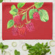 Linge De Cuisine Belles framboises rouges sur tiges Feuilles verts