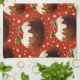 Add a sprinkle of holiday joy to your kitchen with this festive Christmas pudding tea towel featuring a charming repeating pattern of traditional plum puddings topped with Brandy sauce and Holly this soft and absorbent towel is as practical as it is pretty the vibrant red background with white snowflake style dot brings a warm cozy feel to your home during the winter season