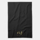 Script Name Upload Photo or Logo Text Elegant Modern Sleek Black & Gold Kitchen & Dining / Table & Kitchen Linens/ Personalized Template Calligraphy Gold Name Monogram / Monogrammed Black Kitchen Towel.