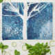 Thème d'hiver bleu et blanc aquarelle peinture d'un bouleau blanc avec arrière - plan de neige. Oeuvres d'art originales sur le thème de Noël. Noël bleu et blanc.