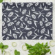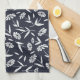 Linge De Cuisine Bleu de marine avec fleurs blanches Design botaniq