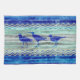 Décor côtier sur le thème marin de trois bleu marine Sandpiperson vieux bois patiné. Plage d'oiseaux pour la vie côtière ou la décoration de plage. Décor parfait pour un gîte balnéaire ou une maison de plage. Situé dans le centre d'un bleu marine graphique des vagues de l'océan.