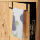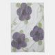 Grande aquarelle violette profonde fleurit avec des feuilles verts, sur gris clair. Décor maison design cuisine serviette de thé