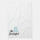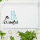 Drôle serviette de cuisine. Moderne et élégant, ce design personnalisé présente le texte "Be Grateful" dans un script informel et connecté combiné avec un dessin d'un fromage grater en bleu vif.