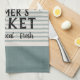 Serviette de cuisine du marché de fermier rayé moderne personnalisée avec votre ville, nom de famille ou autre texte personnalisé. Veuillez noter que la texture de lin subtile fait partie du design imprimé et que le produit n'est pas fait de tissu de lin réel. Cliquez sur le bouton Customiser pour ajouter votre propre texte et créer votre propre design unique d'un genre !