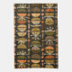 Linge De Cuisine Boho Retro Bowls Lignes Tons Terre Noire