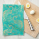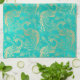 Linge De Cuisine Boho turquoise et or élégant motif paon