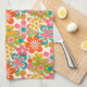 Bring a bit of fun and color to your oven door with this cheerful retro flower pattern kitchen towel. This design features bold and colorful abstract flowers on a pale yellow background.