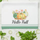 Bonjour Automne Thanksgiving Aquarelle Citrouilles et Automne Feuilles Automne Serviette de cuisine