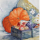 Un joli et mignon ensemble de citrouilles aux pinecones et noisettes. Joli succulent au-dessus des citrouilles oranges. Sous le dicton "Bonne chute à tous"