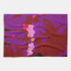 Le design abstrait de la tapisserie de ZoeSPEAK sur cette serviette de cuisine a commencé comme la photo de clôture originale de Zoe de fleurs de bougainvilliers. Le rose des bractées est devenu terre cuite et violet. Les fleurs blanches sont devenues roses. L'arrière - plan est noir, et il y a des points bleus violet, jaunes et roses profondes qui parsèment les formes.