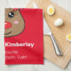 Boule de Noël avec Reindeer Girl, texte personnalisé serviette de cuisine verticale. Super d'envoyer à votre partenaire de pickleball ce Noël. Serviette de cuisine rouge avec motif de Noël de pickleball