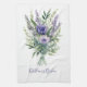 Un beau bouquet de lavande, de fleurs violettes, d'eucalyptus et de verdure sur cette serviette de cuisine. Personnalisez-la avec votre nom.