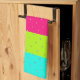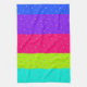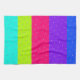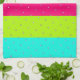 Une serviette de thé avec un mélange de bleu vif, mauve, rose, vert et motif rayé turquoise, avec des pois, toutes les couleurs peuvent être personnalisées à n'importe quelle couleur pour coordonner avec votre décor de cuisine, et du texte peut être ajouté à la personnaliser pour vous-même ou un cadeau. Les bandes blanches sont amovibles si vous préférez.