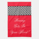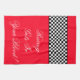 Personnalisez le texte de course à n'importe quel message sur cette voiture rouge vif course thème cuisine, magasin ou serviette de sport, ou le texte est amovible. Les couleurs peuvent être changées en n'importe quelle couleur.