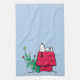 Profitez de ce design de vacances Peanuts avec Snoopy dormant sur sa maison de chien à côté de son arbre de Noël.