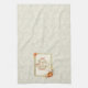 Torchon de cuisine avec l'inscription « Exprimer sa gratitude avec un cœur reconnaissant » dans une police manuscrite, entourée d'un cadre moderne de citrouille et de feuilles scintillantes. Le fond du torchon présente un motif subtil de feuilles et de glands.