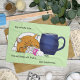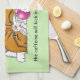 Un chat orange et blanc qui veut se réveiller car ils sont encore très fatigués et allongés à côté d'une grande tasse de café