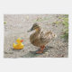Une photo drôle d'un canard en caoutchouc jaune regardant un canard de canard de mère. La "maman, est que vous ?" Cette image mignonne d'oiseau serait cadeau d'amusement pour tous les amants ou mères d'oiseau.