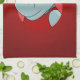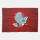 Serviette de cuisine avec l'illustration d'un joli hippopotame avec un casquette du Père Noël rouge et blanc ; conception de vacances de Noël pour les enfants, sur un arrière - plan rouge