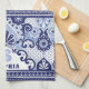 Ce modèle de serviette de cuisine est doté d'un motif en carreaux de style talavera mexicain bleu et blanc traditionnel. Vous pouvez personnaliser avec une initiale et un nom.
