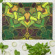 Linge De Cuisine Carton Mandala Flower vert Jaune et orange