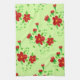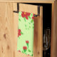 Cuisine ou serviette de bain en arrière - plan vert céleri clair, et motif d'art floral rouge. Cuisine fraîche et fraîche ou design de bain.