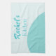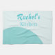 Parfait pour les déversements, cette serviette de cuisine tourbée bleue peut être customisée à votre plaisir. Cette serviette de cuisine est composée d'un arrière - plan en demi-cercle bleu qui a une couleur aqua dans le coin inférieur gauche, le reste du design étant en bleu clair. Votre nom est écrit en haut en bleu cursif avec "Kitchen" écrit en manuscrit bleu. Customisez le vôtre aujourd'hui ! Oeuvre originale : © 2016, Rhonda Jones