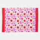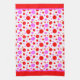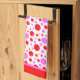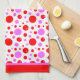 Cercles roses et rouges et pois grands et petits dans un motif rétro mignon sur une serviette de cuisine aux bordures roses et rouges.