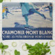 Poster vintage des premiers Jeux Olympiques d'hiver à Chamonix, France en 1924, avec le Mont Blanc voisin qui sert de lieu d'événement alpin.