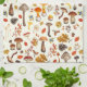 Entrez dans un pays des merveilles boisées avec ce motif qui présente un éventail de champignons sauvages, de feuilles d'automne, de baies et de glands. Peint dans de riches couleurs automnales, chaque élément donne vie à l'essence de la forêt, mettant en valeur la diversité et le charme de la nature.