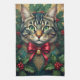 Il est le plus cool des chats, décoré dans sa finition de Noël, y compris une sonnette de jingle dorée sur un ruban de cou rouge. Entouré d'un saint vert vif, il sera l'ajout parfait à votre cuisine cette saison de vacances. Pourquoi ne pas le rouler serré et le fourrer dans la réserve de Noël du cuisinier de la famille ?
