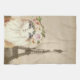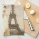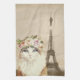 Serviette de cuisine amusante pour amoureux de les chats avec photo arrière - plan sepia vintage teinte de la Tour Eiffel avec superposition d'un beau chat fantaisie à couronne florale.