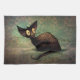 Grand chat oriental noir observé mignon se reposant sur un tissu bleu vintage de damassé, un beau dessin et l'image d'un chat par Paul Stickland pour StrangeStore. Un chat noir plus drôle, des chats noirs de bonne chance, des chats de Halloween et des cadeaux orientaux de chat de shorthair sur StrangeStore sur Zazzle. Chats noirs d'amour ! Grand pour votre partie de Halloween ! L'artiste et l'illustrateur du livre d'enfants, Paul Stickland est bien connu pour ses créatures mignonnes et humoristiques et caractères drôles, tout créé d'une illustration ou d'une illustration originale.