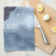Cette serviette de cuisine est faite de silhouette de bois de cerf et de flocons de neige en marine foncée sur un arrière - plan bleu ciel texturé. Un texte optionnel "Joyeux Fêtes" et un modèle ont été fournis pour ajouter votre nom et/ou un autre texte. Faites une recherche ID861 à ID864 pour voir d'autres options de couleurs et d'autres produits dans cet ensemble moderne de design de Noël.