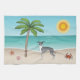 Linge De Cuisine Chien Blanc Et Bleu À L'Iggy Sur Une Plage Tropica