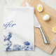 Créez un cadeau personnalisé avec un look élégant. Cette serviette de cuisine présente des illustrations florales bleues et blanches avec un accent d'oiseau stylisé pour ressembler à des plats vintages de porcelaine. Il est prêt à être personnalisé avec un nom en lettres bleues assorties.
