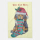 Le mignon chiot sur cette serviette de cuisine personnalisable a l'air très festif en portant son chapeau de santa rouge avec une branche de saint dedans. Le petit chiot brun et noir tient dans sa bouche son bas de Noël rayé rouge et vert tandis qu'il attend avec impatience une visite du Père Noël pour remplir son stock de nombreux cadeaux et autres gâteries pour chiens. Le design mignon du petit chiot se distingue vraiment sur cette serviette de noël. Vous pouvez personnaliser cette serviette de cuisine en ajoutant votre propre texte si vous le souhaitez. L'illustration originale du chiot est peinte en aquarelle