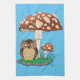 Petite chouette grincheuse se cachant sous un champignon comme un parapluie loin de la pluie.