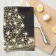 Christmas Party Golden Shiny Tree Winter Black kitchen towel. Unique, beautiful, stylish design. Easy to be personalized. Font style, size and colors can be changed. Matching items are available.