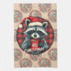 A charming raccoon dressed in a Santa hat holds a steaming mug of cocoa before a red buffalo plaid backdrop, capturing the cozy spirit of a rustic woodland Christmas. The combination of festive red, soft gray fur, and classic flannel pattern brings warmth and nostalgia to the holiday season. With its blend of whimsy and modern country style, this cheerful design perfectly embodies the charm of winter mornings and Christmas gatherings. AI generated artwork.