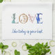 "AMOUR" en lettres décorées de fleurs... "comme aujourd'hui, c'est votre dernier". Joli, coloré et élégant.