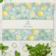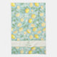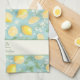 citron nom de famille serviette de cuisine, citrons motif, fruit méditerranéen botanique jaune, fleurs de limone, fleurs blanches sur le bleu menthe, pastel clair turquoise, aquarelle peinte arty,"nom de famille floral", feuille feuille verte d'agrumes frais,"monogramme customisé personnalisé personnalisé"