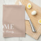 Serviette de cuisine festive conçue sur mesure pour l'automne de saison avec un design citrouille blanc rustique moderne et un nom de famille personnalisé.