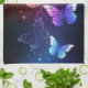 Night glowing butterflies on a dark abstract background. Du beurre noir. Design avec du beurre.